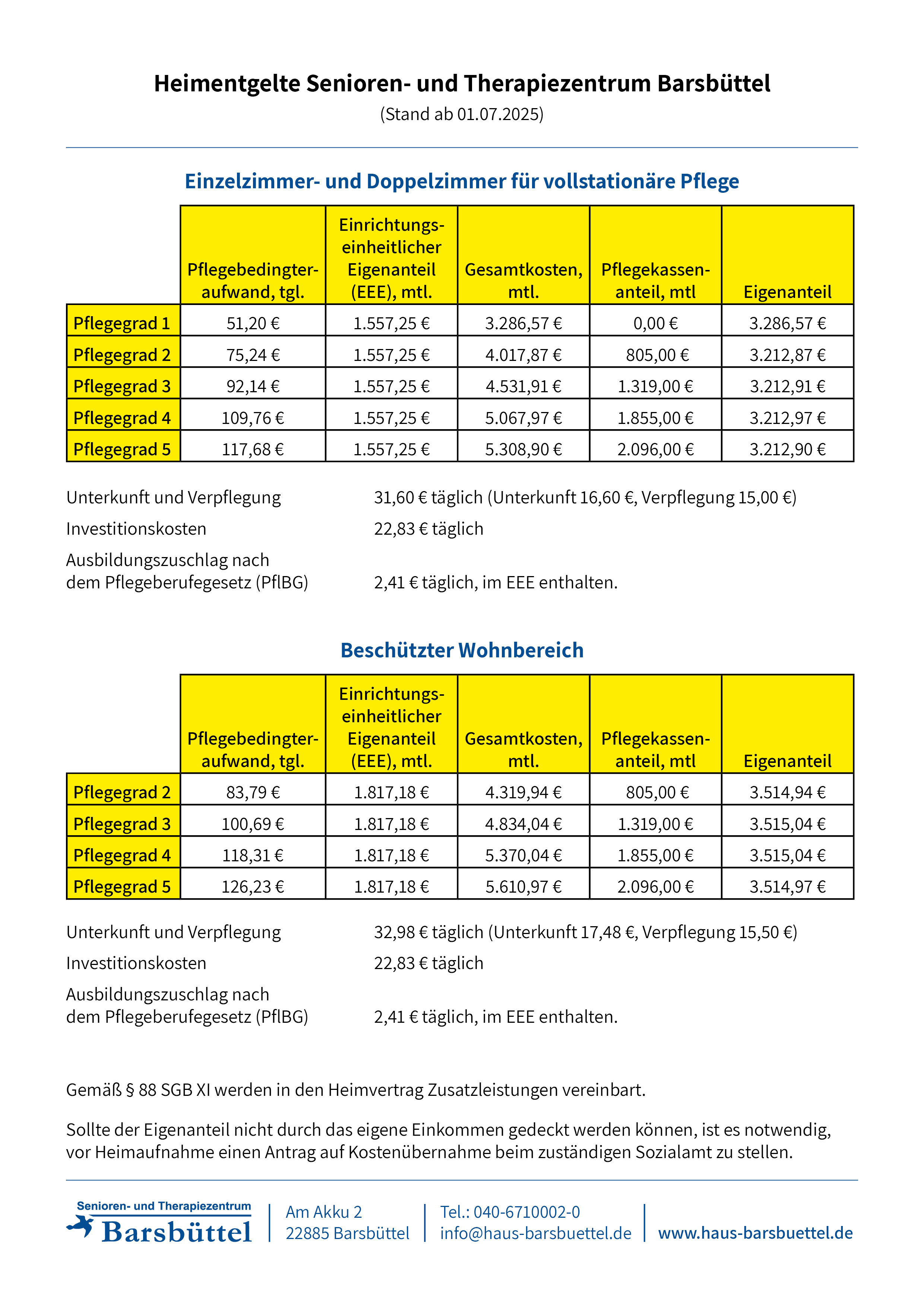 Heimentgelte Senioren und Therapiezentrum Barsbüttel